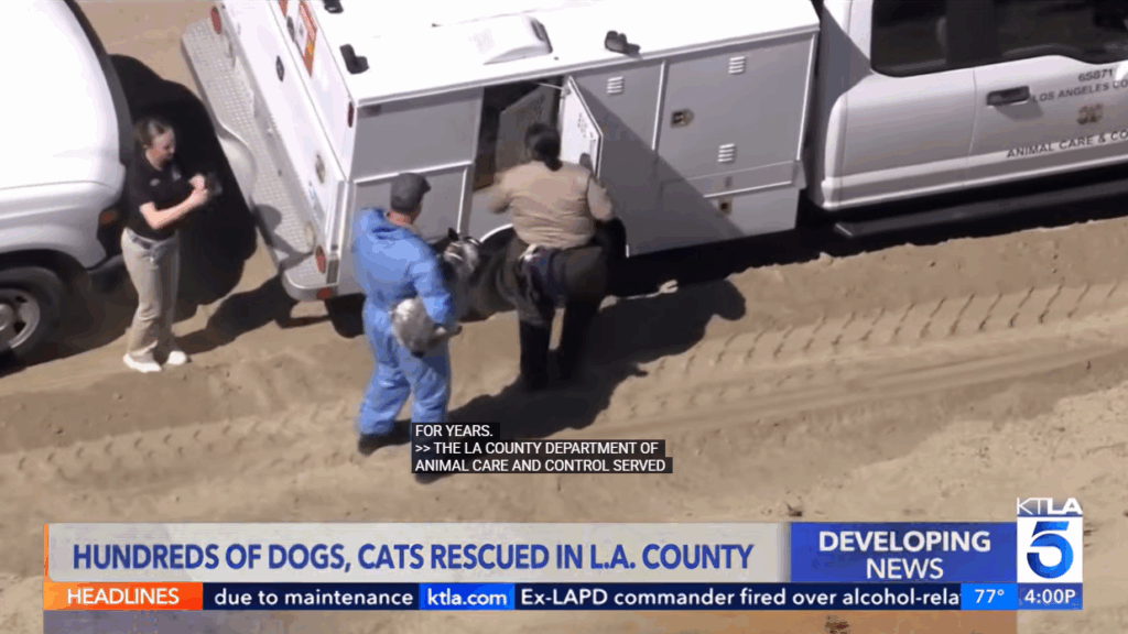 Centinaia di cani e gatti sono stati salvati da un rifugio per animali a nord di Los Angeles in quella che, secondo le autorità, potrebbe rivelarsi la più grande operazione di questo genere nella storia degli Stati Uniti. Gli animali sono stati trovati a vivere in condizioni precarie all’interno di una struttura chiamata Rock N Pawz a Lake Hughes, circa 100 chilometri a nord di Los Angeles. Più di 70 operatori del dipartimento per la Cura e il Controllo degli Animali della Contea di Los Angeles sono stati coinvolti nelle operazioni di salvataggio, insieme a membri di organizzazioni per la tutela degli animali. In totale sono stati soccorsi 250 cani e 66 gatti, Gli animali vivevano, in gabbie, ricevevano cibo in modo sporadico ed erano senza acqua proprio in un momento in cui la zona è attraversata da una violenta ondata di calore.